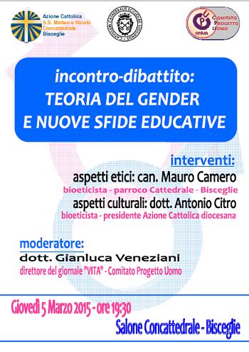 Incontro-dibattito nel salone della Cattedrale di Bisceglie sul ddl Fedeli per l'insegnamento obbligatorio della teoria del gender in ogni ordine e grado di scuola.